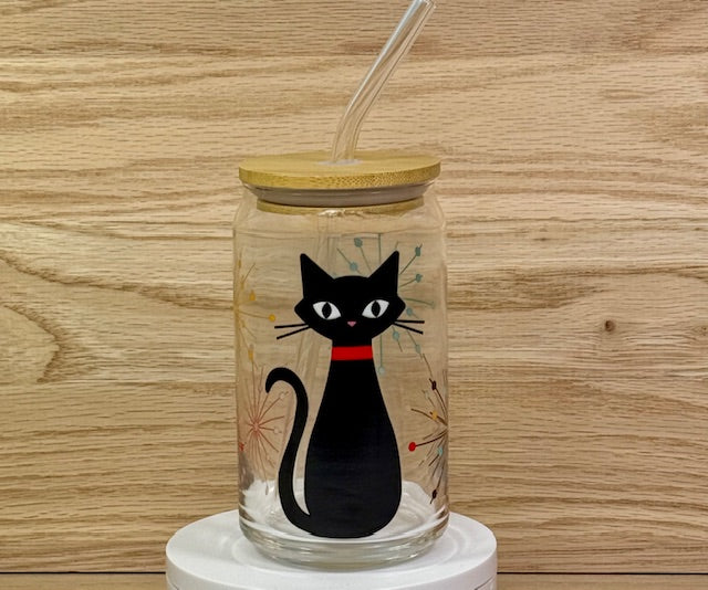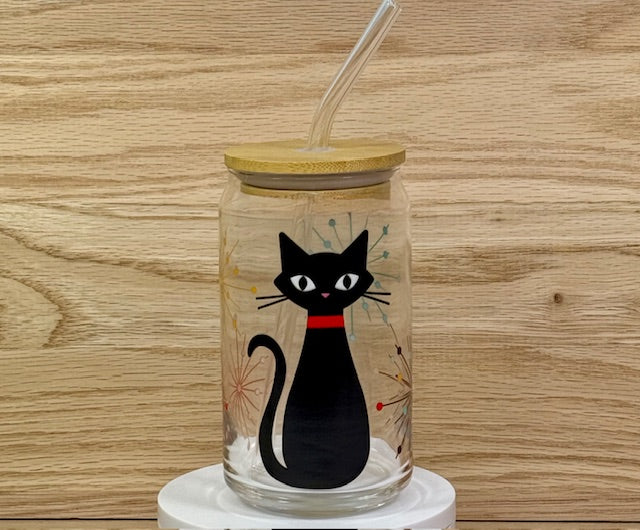Atomic Cat Glass with Bamboo Lid and Straw
