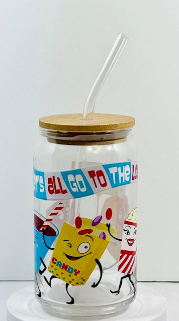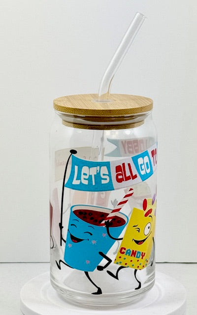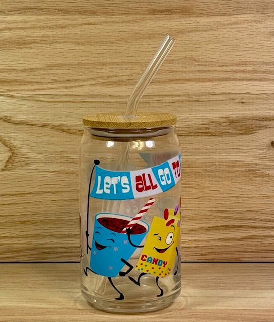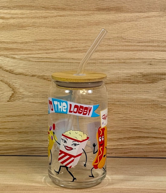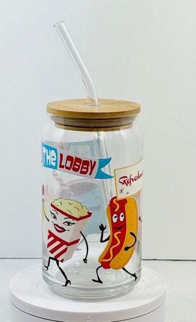 Let’s All Go To The Drive-In Glass with Bamboo Lid and Straw