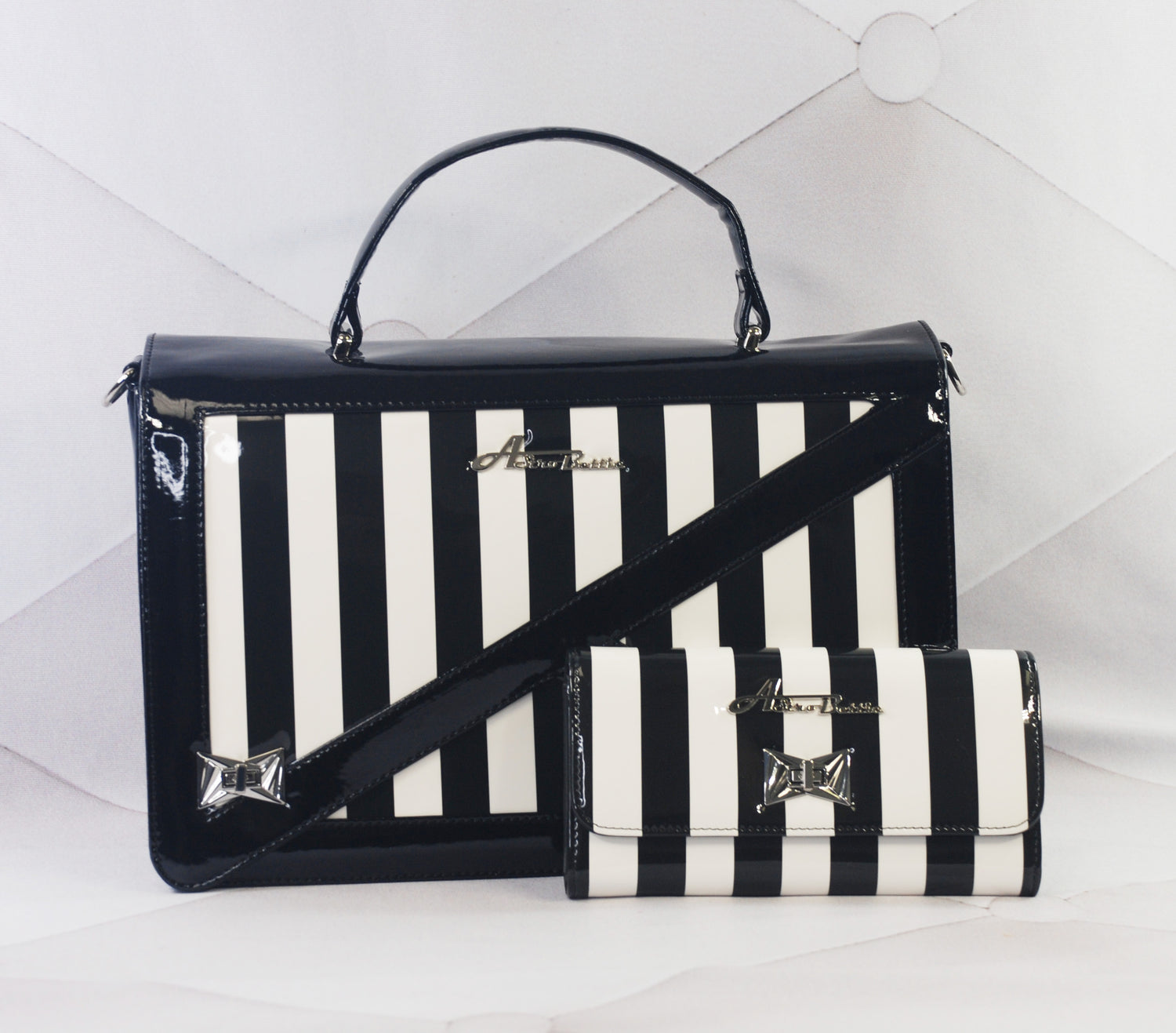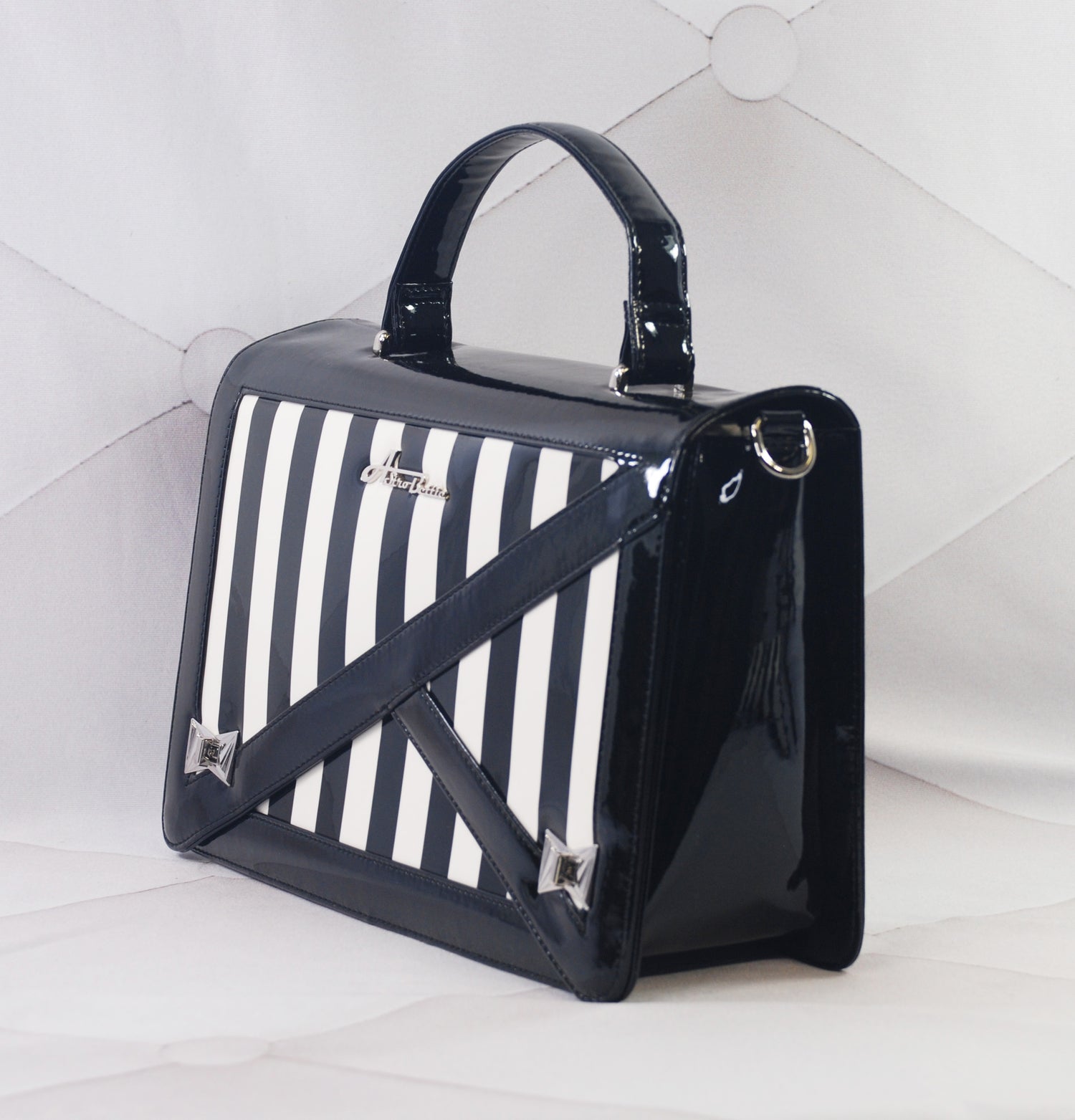 Stripe Madness! Made from vegan friendly Stripe and shiny Black vinyl it is sure to get noticed!