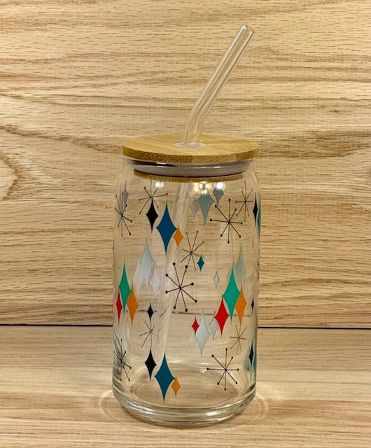 MCM Atomic Diamond Glass with Bamboo Lid and Straw