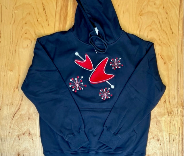 Introducing our MCM Red Sputnik Boomerang ! This hoodie pairs perfectly with our high waisted jeans for the perfect retro casual look!