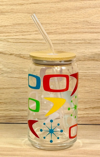 MCM Sputnik Block Glass with Bamboo Lid and Straw