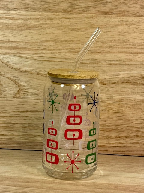 Mid-Century Modern Glass with Bamboo Lid and Straw