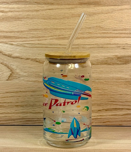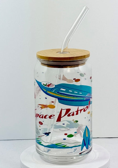 Space Patrol Glass with Bamboo Lid and Straw